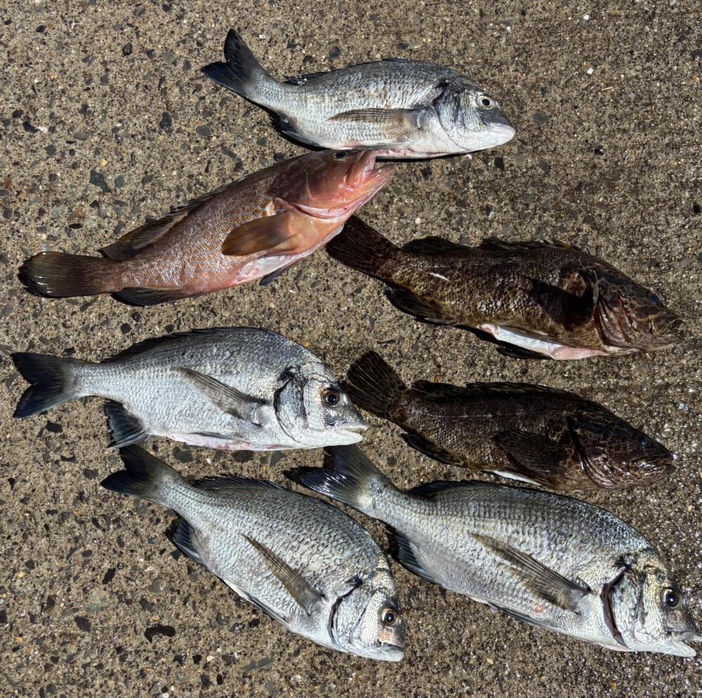 ダンゴ釣りでチヌ二桁(小さいのはリリース)ルアーでアコウ・タケノコメバル🙌二刀流🙌 -